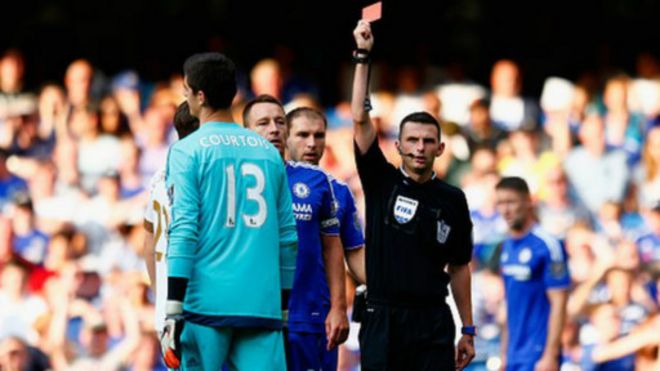 Mlinda mlango huyo wa kimataifa wa Ubelgiji mwenye miaka 23, alitolewa nje alipomzuia mshambuliaji wa Swansea Bafetimbi Gomis nafasi ya kufumania nyavu katika mchezo uliopigwa jumapili darajani Stamford.